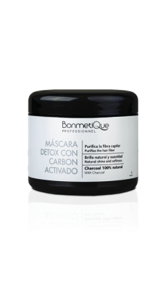 Desarrollada con carbon activado, un ingrediente 100% natural con certificacion ECOCERT, desintoxica y purifica la fibra capilar eliminnando las toxinas y las impurezas de los residuos que se acumulan diariamente en el cuero cabelludo. Deja el cabello con un brillo natural y una suavidad profunda.Modo de uso: luego de lavar el cabello con shampoo DETOX con carbon activado Bonmetique Professionel, aplicar la mascara sobre el cabello huedo secado a toalla. Masajear los largos y puntas. Dejar actuar 5 minutos, enjuagar con abundante agua. |