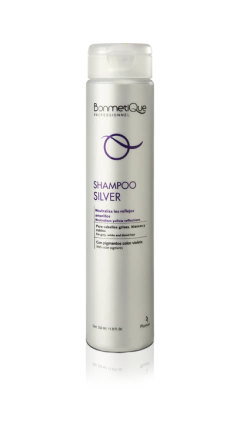 Shampoo Silver Bonmetique Professionnel es la solución ideal para quienes buscan un cabello fuerte, limpio y sin reflejos amarillentos. Diseñado especialmente para cabellos grises, blancos y rubios —naturales, teñidos o decolorados— elimina eficazmente los tonos amarillos y naranjas no deseados, dejando un color perfectamente equilibrado.